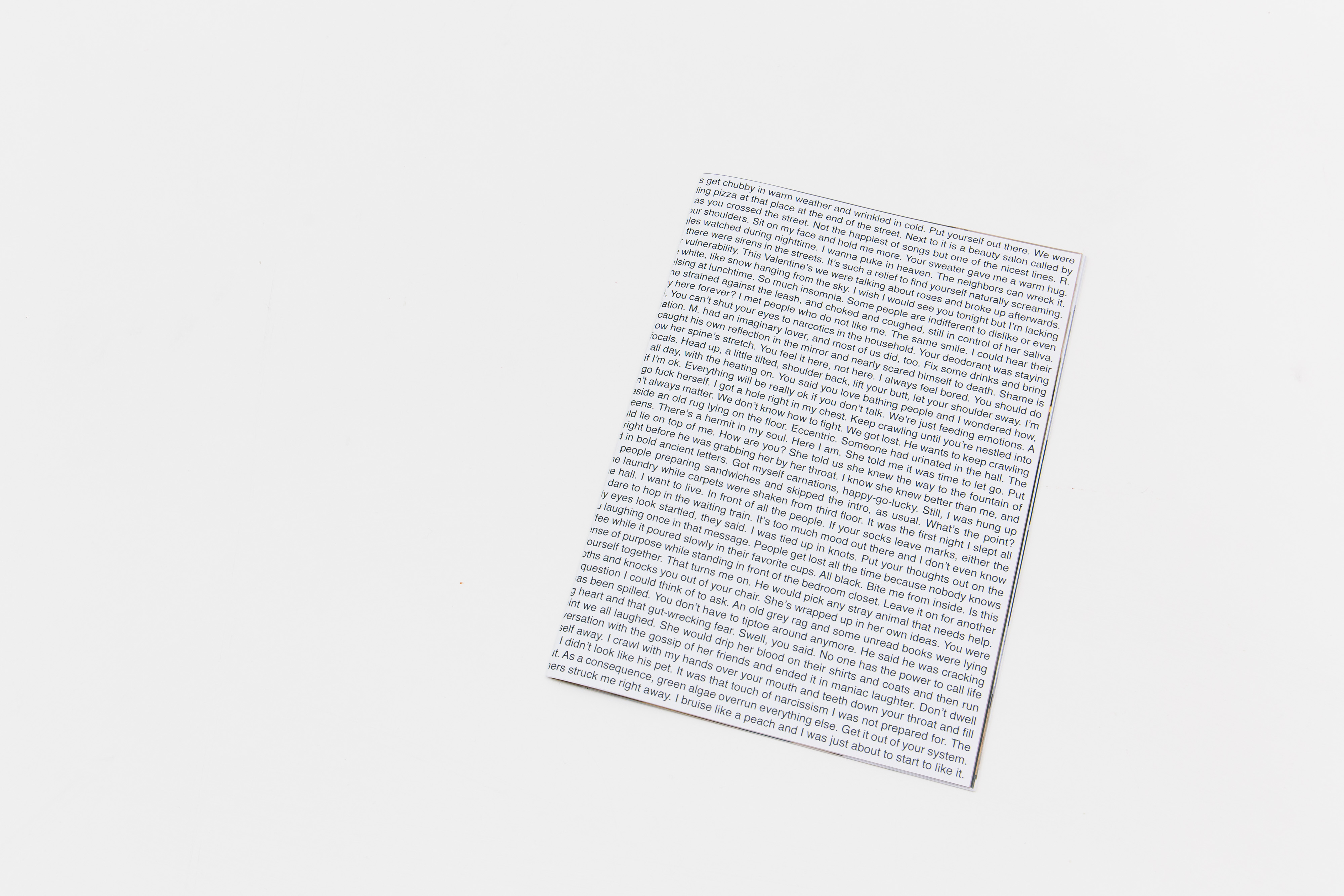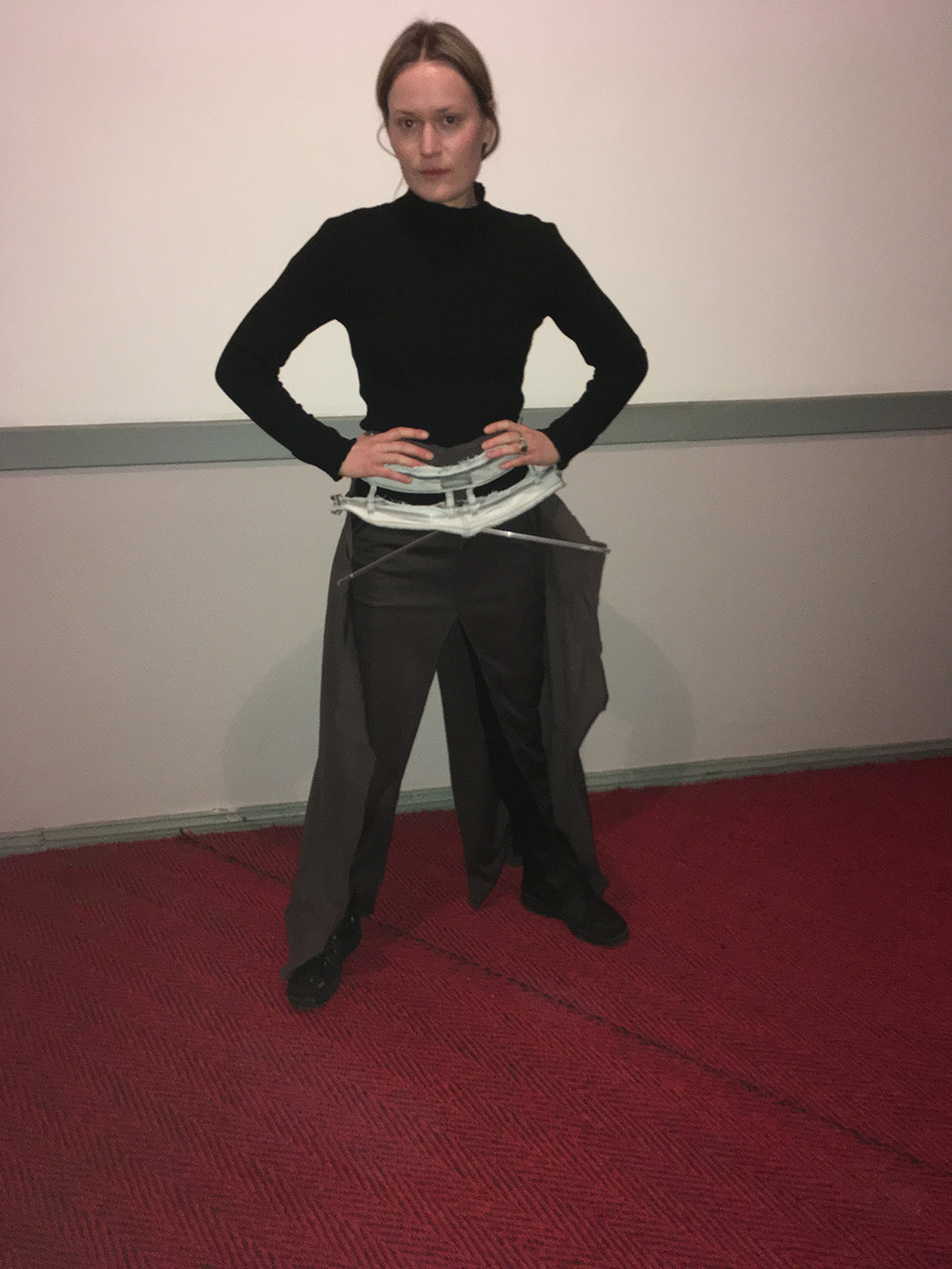 and her Diploma in Media Art at the Karlsruhe Academy of Arts and Design in 2013. Combining strategies such as sculpture, performance and drawing, her work links different stages of visibility: a performance can be transformed into an object and vice versa. This blurs the concepts of genre, the immaterial and the physical space - to reflect forms, contexts and constellations that capture the polyphony of bodies in the 21st century.