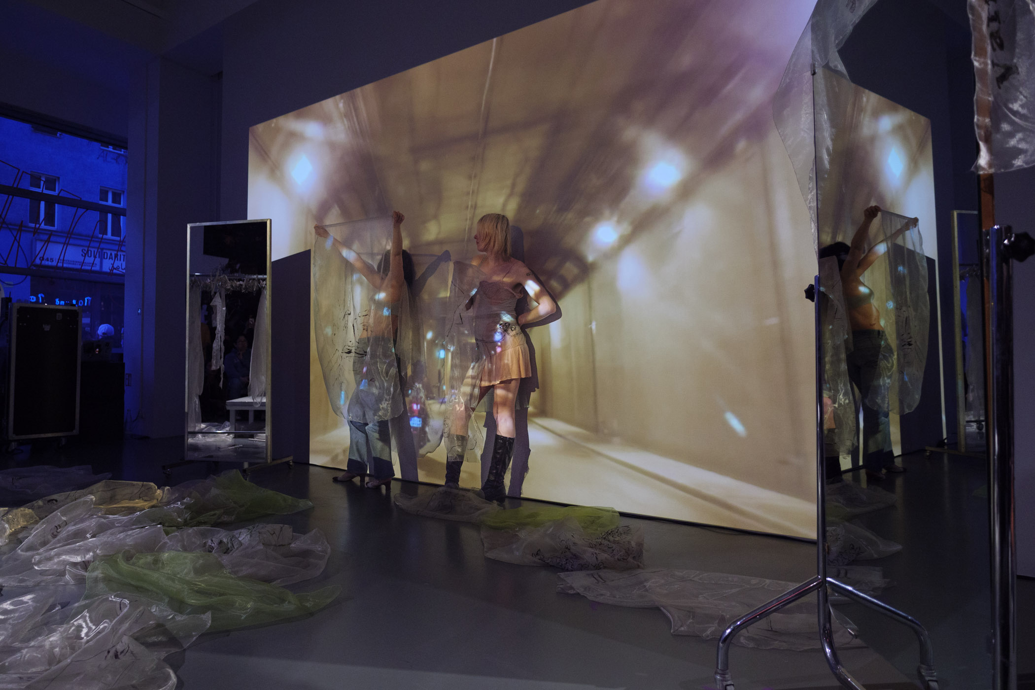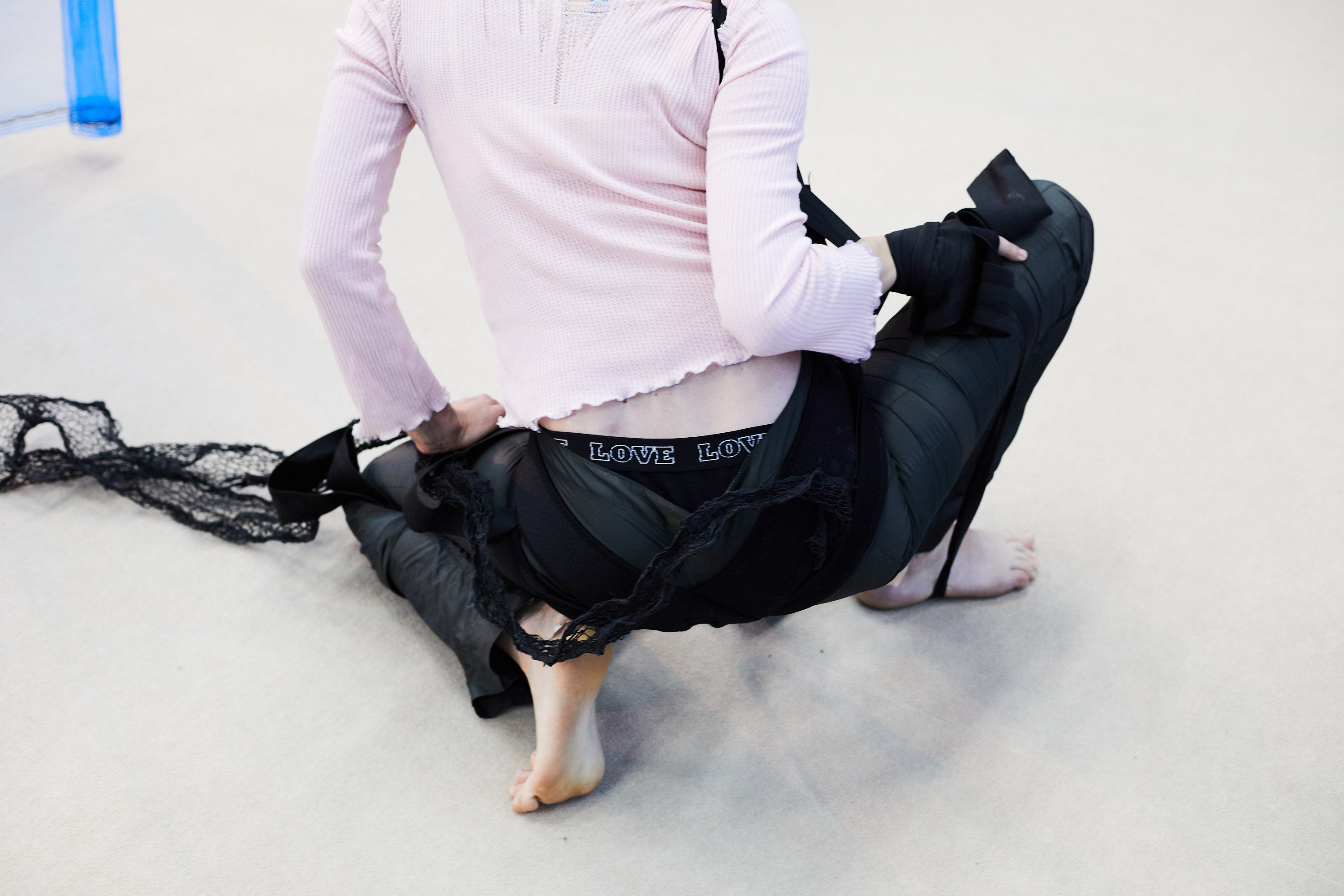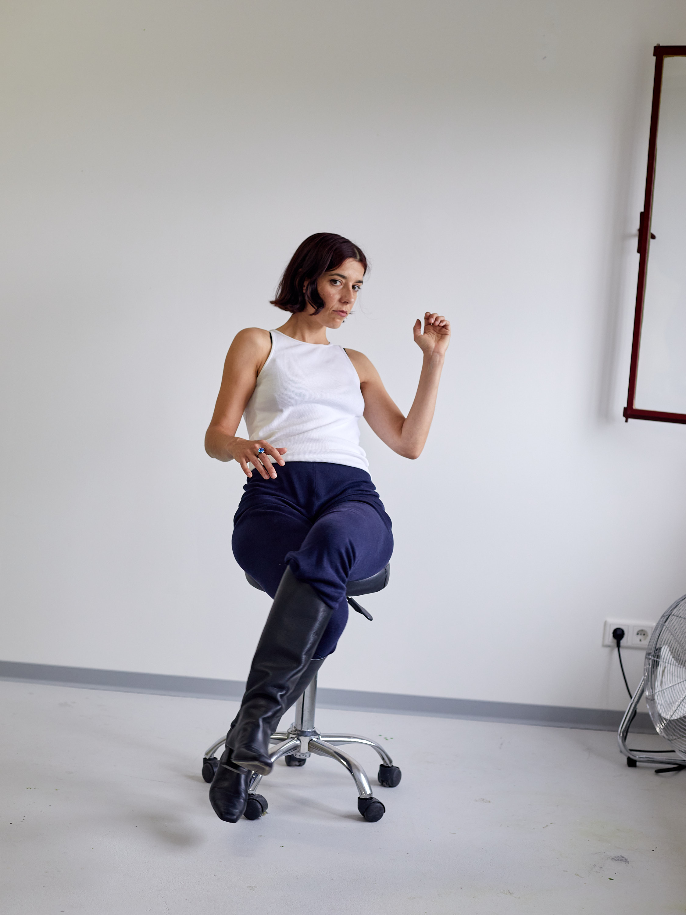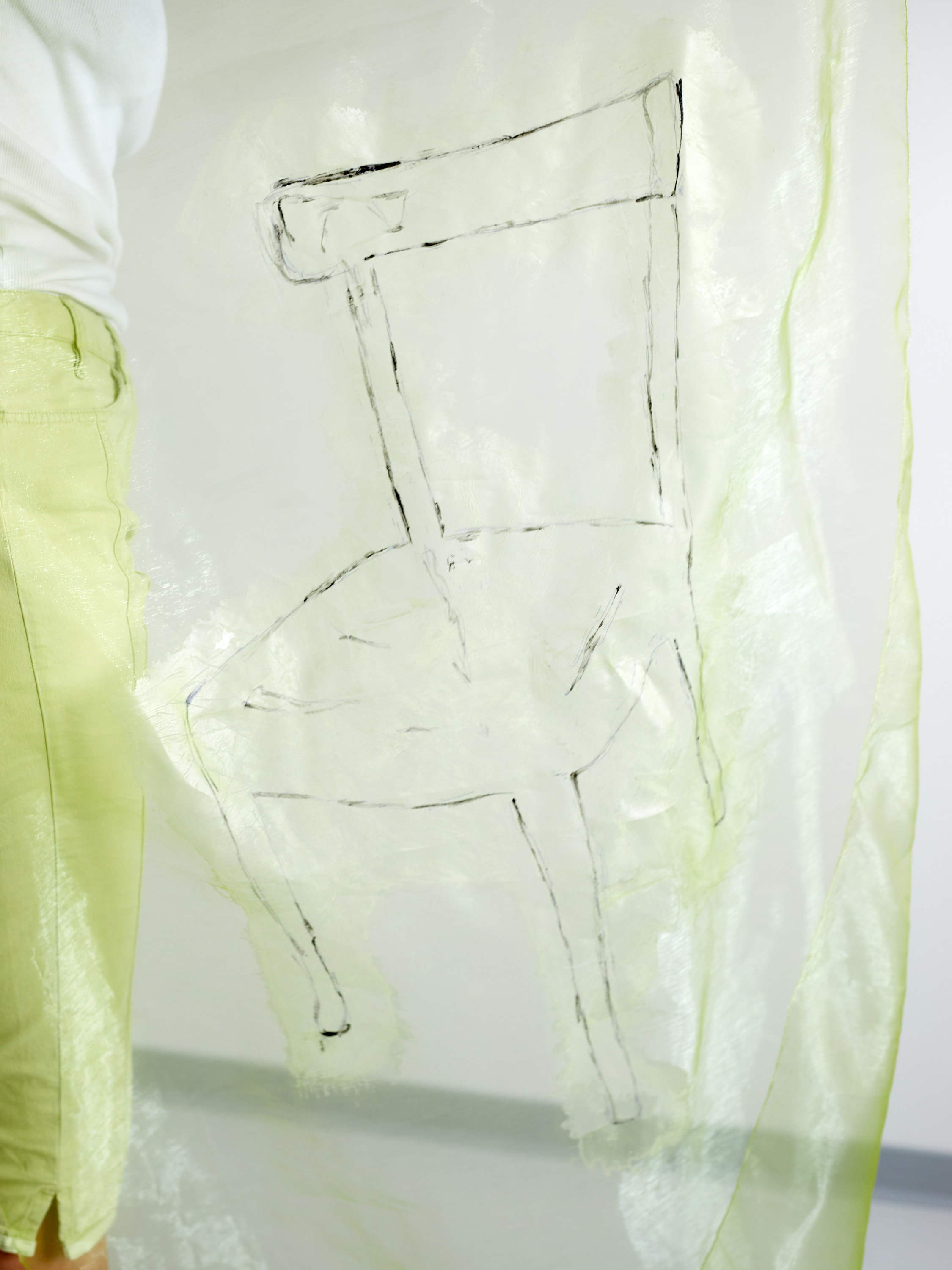 and her Diploma in Media Art at the Karlsruhe Academy of Arts and Design in 2013. Combining strategies such as sculpture, performance and drawing, her work links different stages of visibility: a performance can be transformed into an object and vice versa. This blurs the concepts of genre, the immaterial and the physical space - to reflect forms, contexts and constellations that capture the polyphony of bodies in the 21st century.