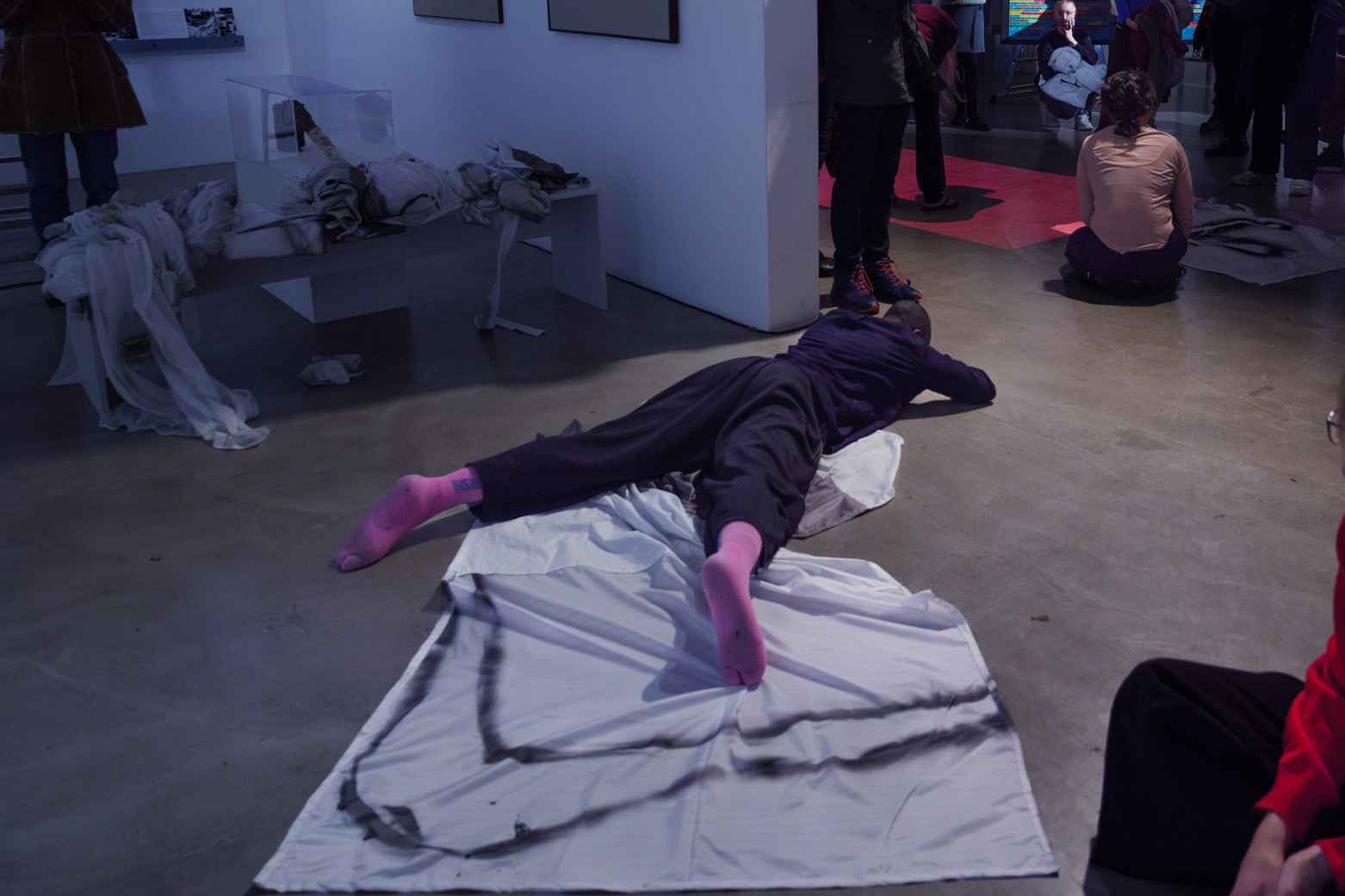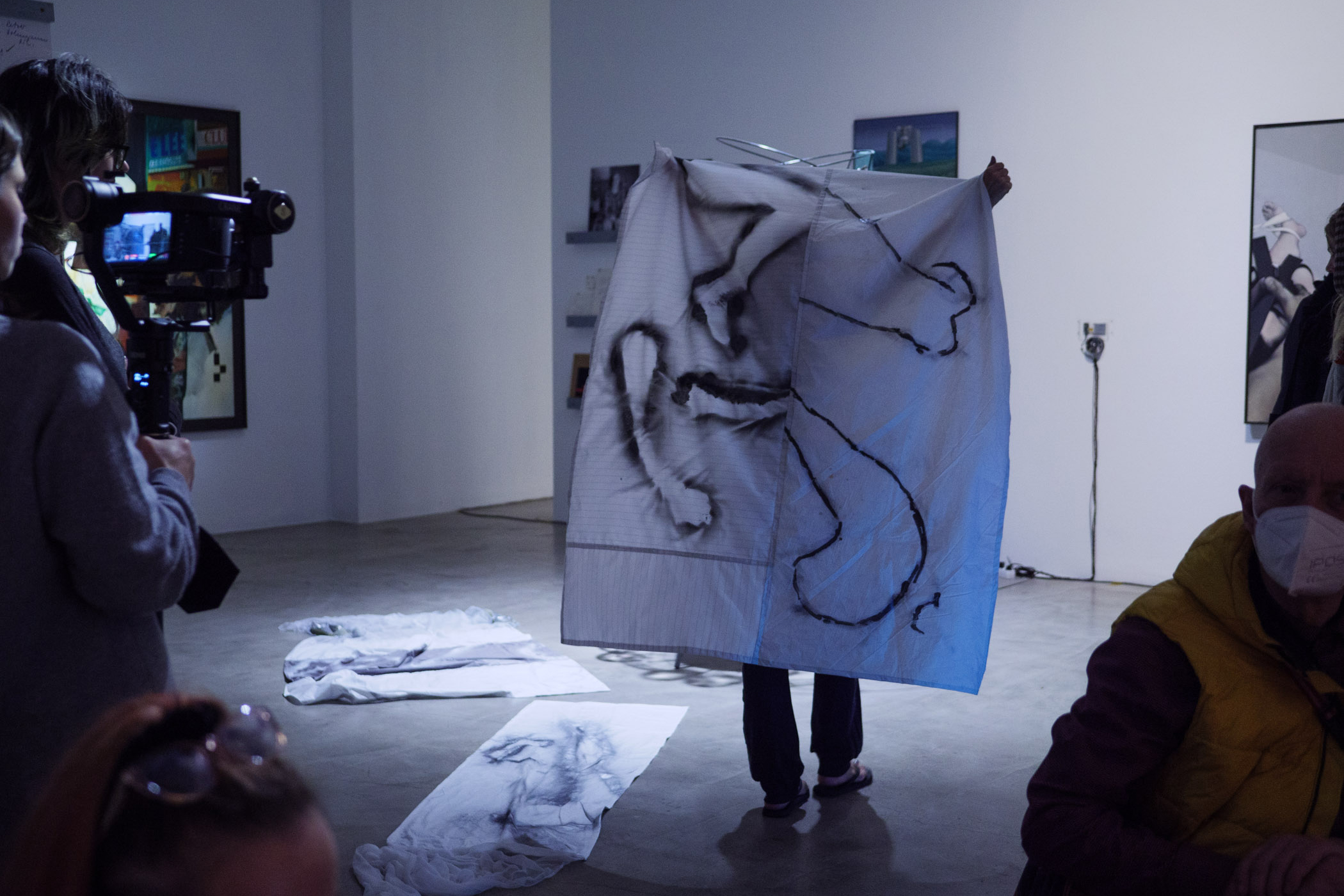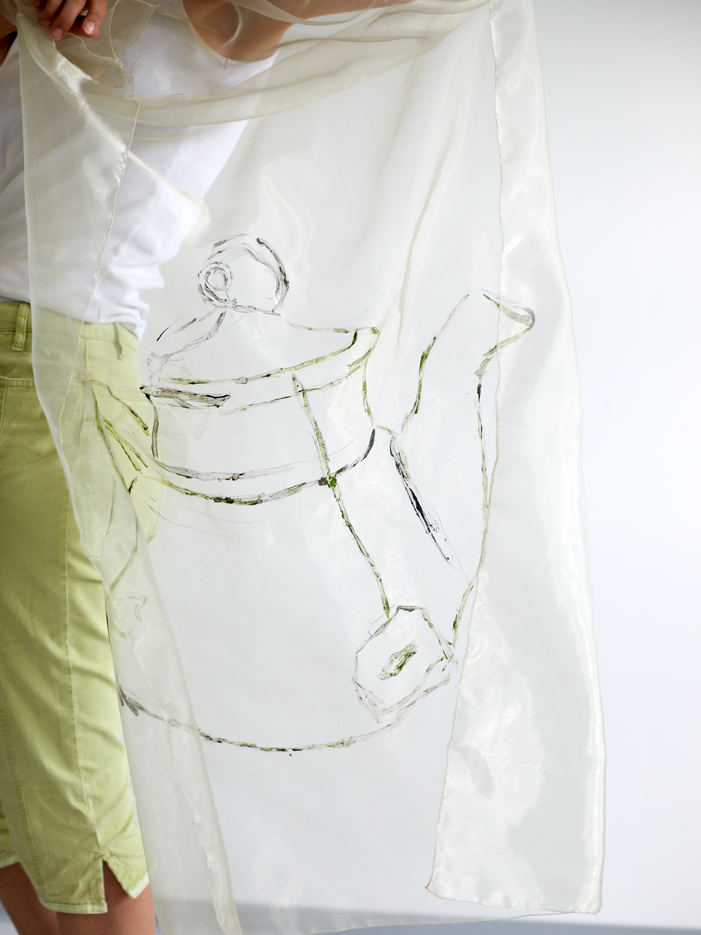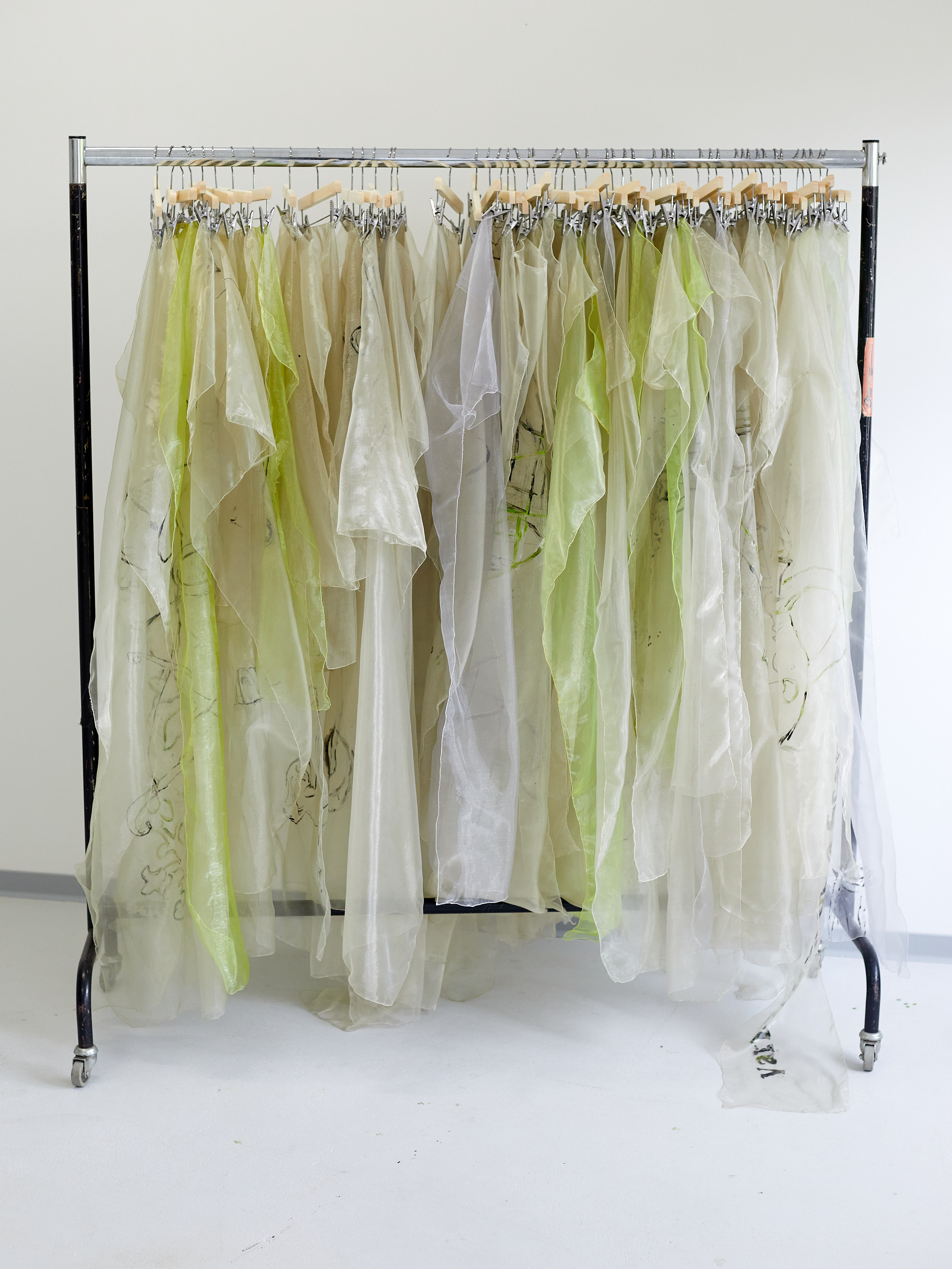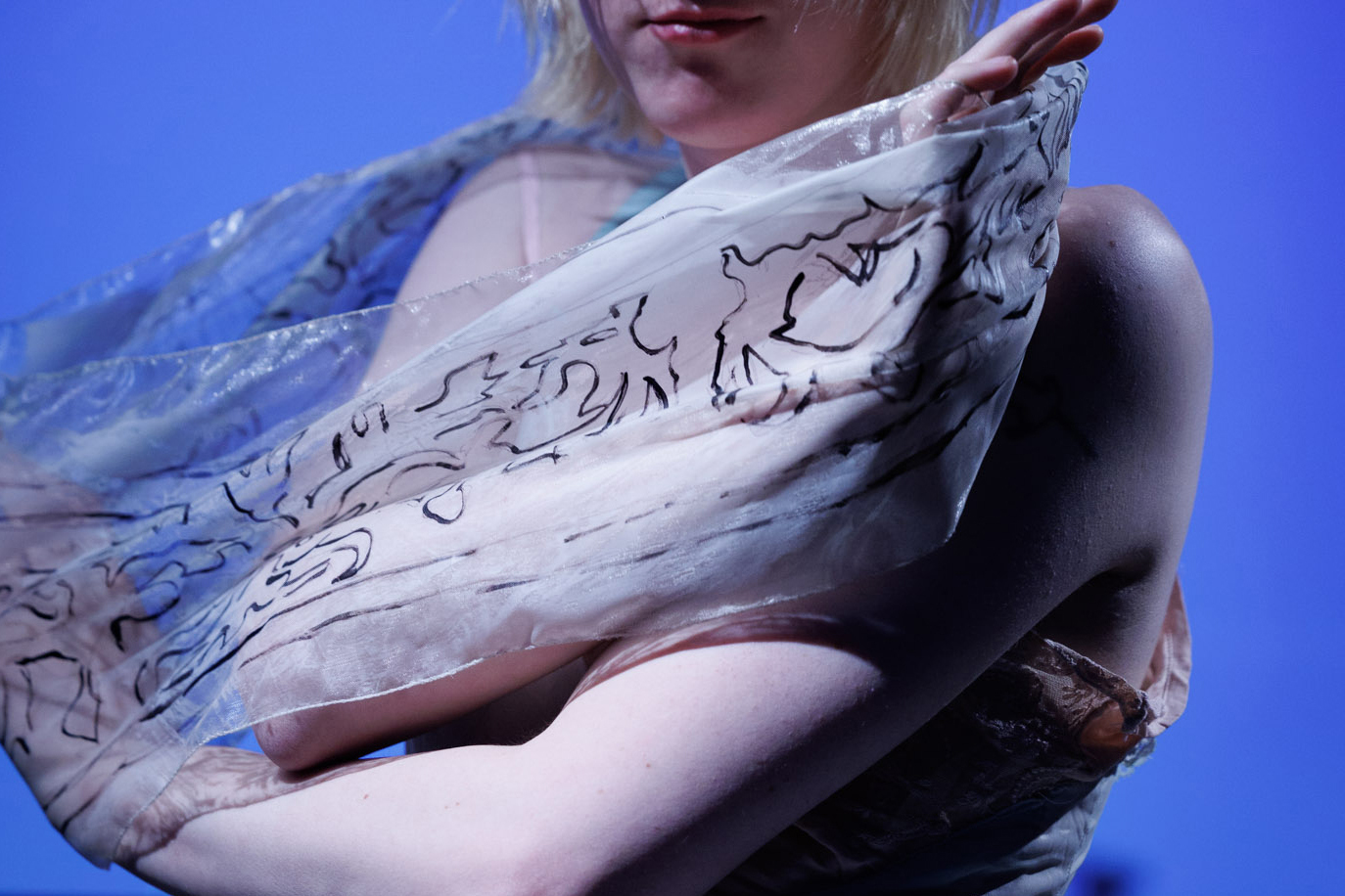 and her Diploma in Media Art at the Karlsruhe Academy of Arts and Design in 2013. Combining strategies such as sculpture, performance and drawing, her work links different stages of visibility: a performance can be transformed into an object and vice versa. This blurs the concepts of genre, the immaterial and the physical space - to reflect forms, contexts and constellations that capture the polyphony of bodies in the 21st century.